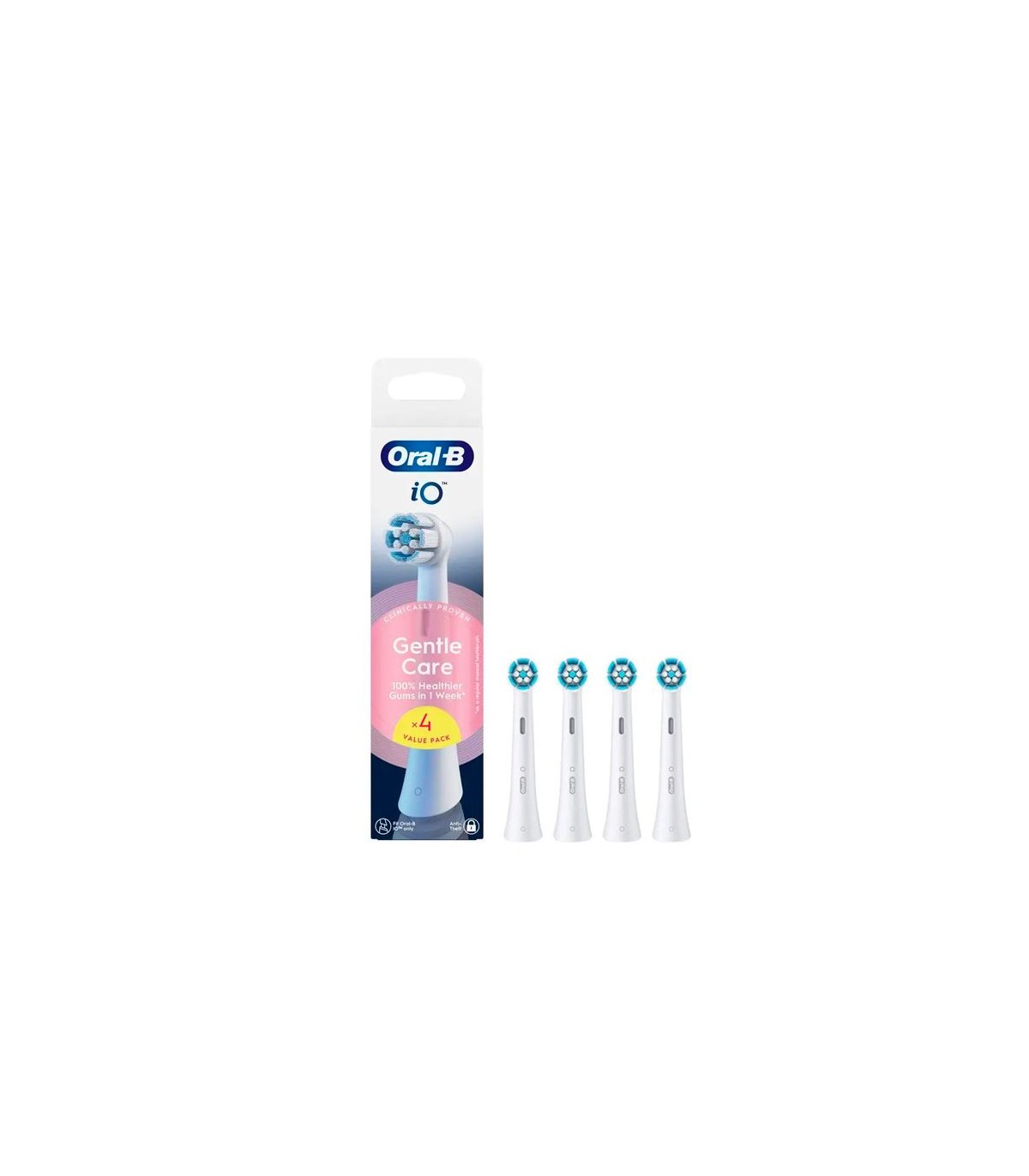 Los cabezales de recambio Gentle Care de Oral-B Series iO combinan microvibraciones potentes pero suaves con nuestro exclusivo diseño de cabezal redondo inspirado por los dentistas para ofrecerte una sensación de limpieza profesional cada día. Diseñados exclusivamente para los mangos de los cepillos de dientes eléctricos Oral-B iO, los cabezales Gentle Care ayudan a eliminar hasta un 100 % más de placa bacteriana que un cepillo de dientes manual normal para conseguir unos dientes limpios y brillantes. El cabezal Gentle Care combina 4000 filamentos suaves y un anillo exterior acolchado que se adapta con precisión a la curva de los dientes y protege las encías. Dado que los dentistas recomiendan cambiar el cabezal de tu cepillo de dientes cada 3 meses para obtener los mejores resultados, los cabezales de recambio Oral-B cuentan con filamentos que cambian de color para indicar cuándo es hora de cambiarlo. Disfruta de un poder de limpieza superior con los únicos cabezales de recambio diseñados exclusivamente para que se adapten perfectamente a tu cepillo de dientes eléctrico Oral-B iO.